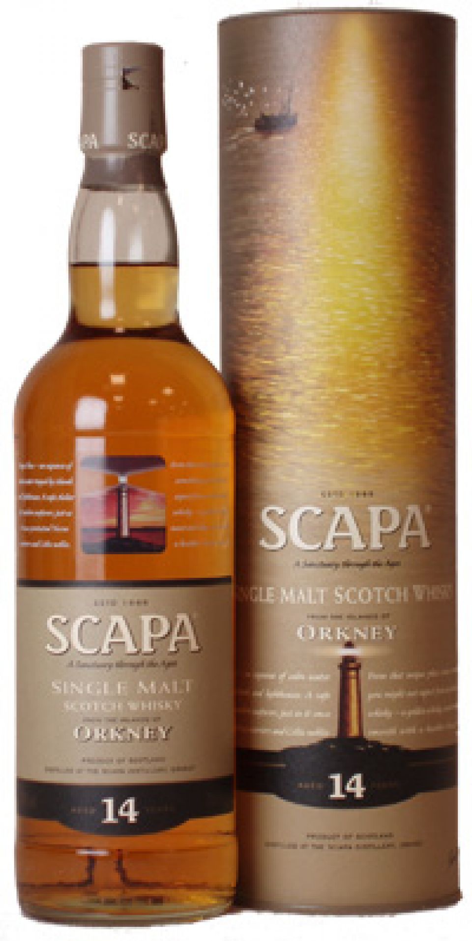Scapa er egentlig en lidt besynderlig ø-whisky, fordi den brygges udelukkende på malt der ikke er tørverøget. Men alligevel har den en kant af tørvethed, efter sigende fordi destilleriets vandforsyninger har en kraftig smag af tørv.